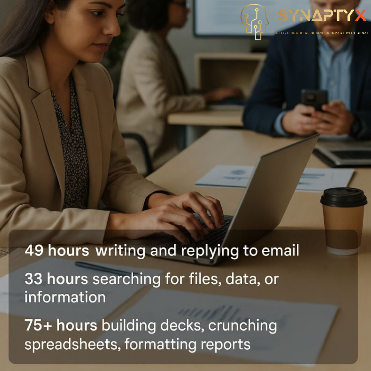 If your teams want those hours back, we are happy to share what’s working for us at Synaptyx AI and how we are helping others win back their hours. Start simple - start now.